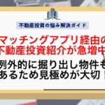 近年、マッチングアプリを通じて「不動産投資」を勧められるケースが増えています。その多くは営業目的の勧...