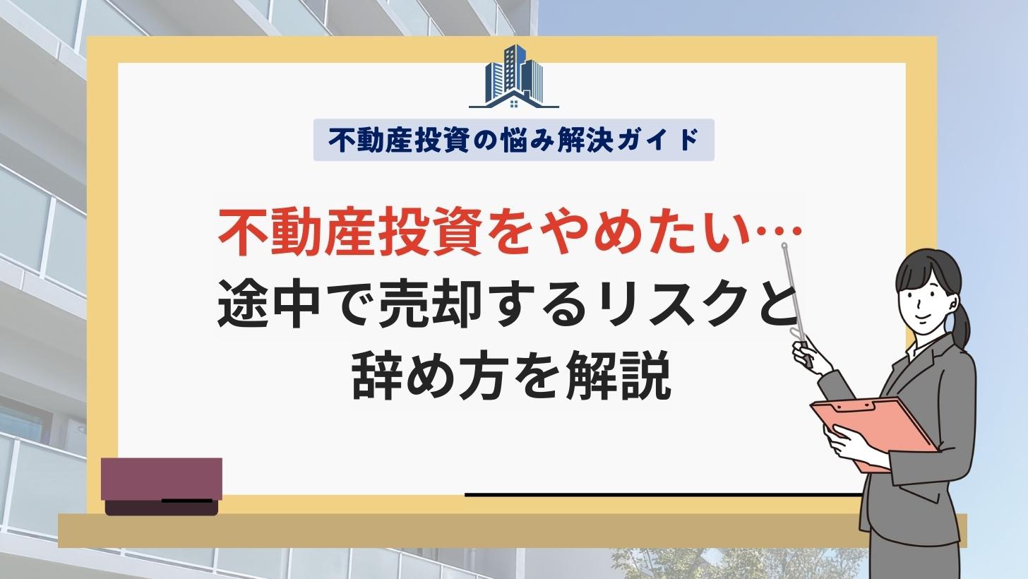 この記事では、不動産投資をやめたいと感じる理由や途中で売却する際のリスク、不動産投資のやめ方や売却のタイミングなどについて紹介します。